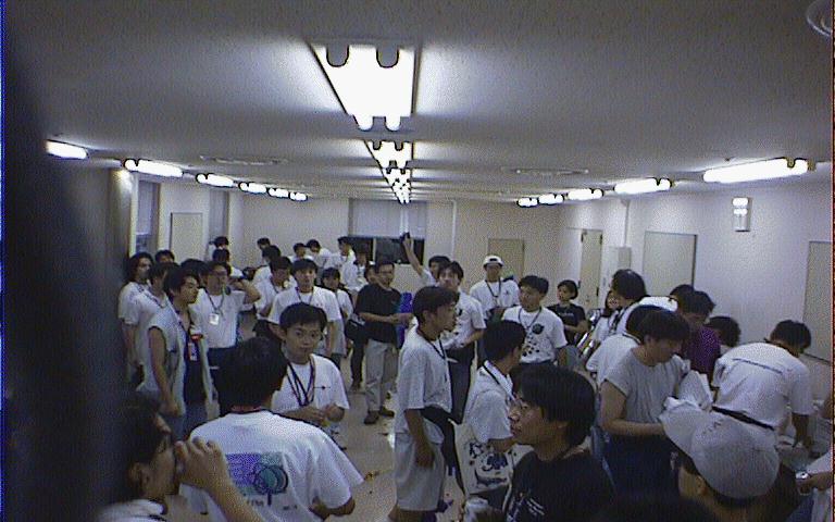 ケーブルを天井から落とす作業は飯田電線というケーブル業者に依頼し、 我々は落ちてきたケーブルを 樽ぐらいの大きさの芯に巻いていく作業を行った。 ケーブルを芯に巻く作業など、 5〜6年前のUNIX Fairで10Base-5のEthernetケーブルを 巻いて以来で懐かしかったが、それと同時に、 この5年間での通信速度の向上を感じることができて感慨深かった。